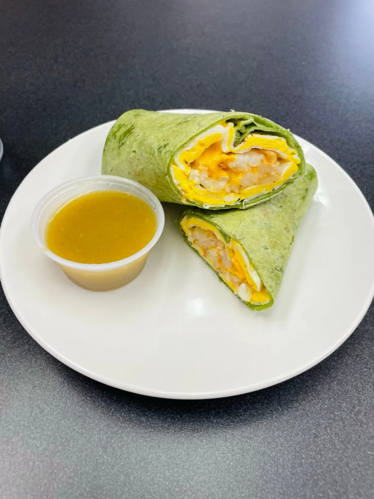 Made With 2 Scrambled Eggs, Spinach, Hash Brown And Cheese.